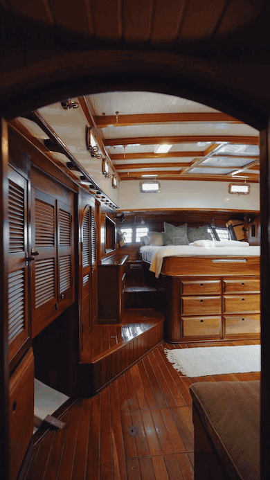 Tree of Life features three elegantly appointed staterooms, each with a private ensuite bath. The spacious main saloon offers a refuge perfect for relaxing on wrap-around cushions, listening to music, or sharing a board game.