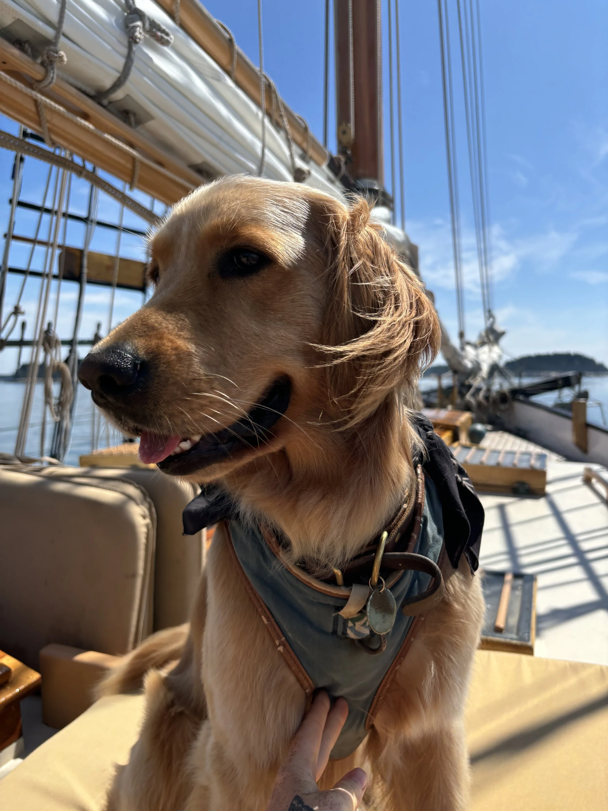 Alden (named after John Alden of course!) has been a staple on board Tree of Life since 3 months of age. His favorite things to do while sailing are to have snacks on the fore deck, see if his stuffed Bear can swim overboard, and help haul on lines. While Alden doesn’t typically join us for trips, he can sometimes be found greeting guests during boarding and disembarking.